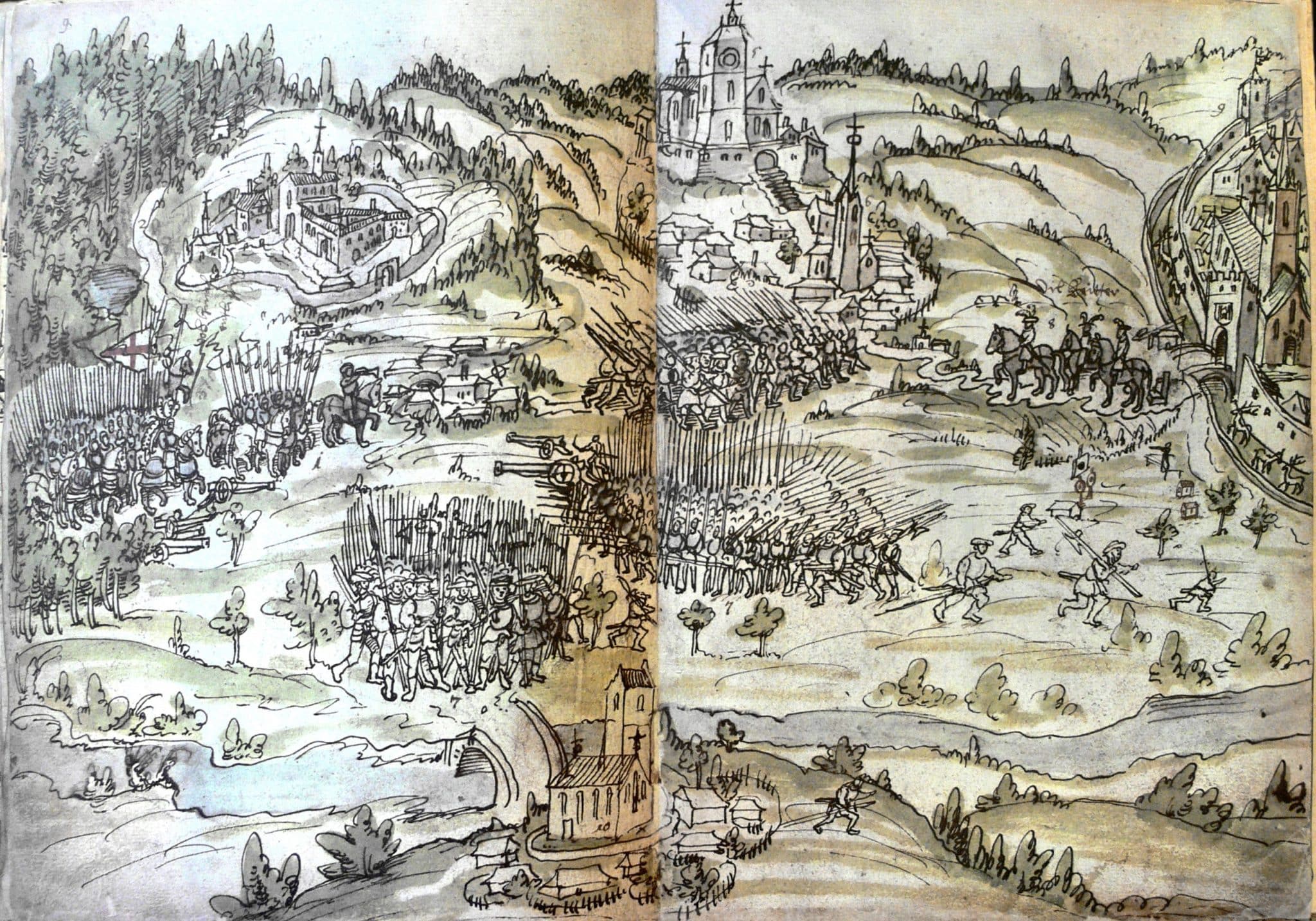 Image d’ouverture : Chronique de Weissenau sur la guerre des paysans de 1525. Archives générales princières de Waldburg-Zeil, château de Zeil, ZA Ms 54, autour de 1525, pages 22-23.